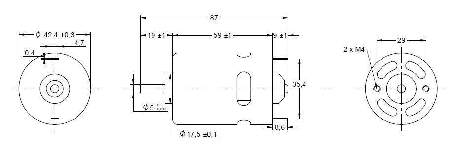 DC-motor, likströmsmotor med specifikationer spänning 36VDC ström 0,6A varvtal 3900rpm effekt 14W. Motorerna kan även levereras med planetväxel, kuggväxel, snäckväxel, encoder samt EMC avstörning i form av kondensator eller varistor. För vissa typer kan även kolborst eller metallborst väljas. Samtliga motorer kan kundanpassas efter behov. Vanliga anpassningar är axeldimensioner, kabelanslutningar och kablage. Läs mer här om