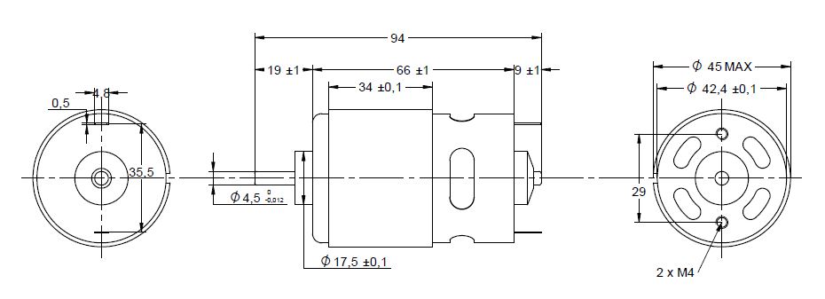 DC-motor, likströmsmotor med specifikationer spänning 12VDC ström 2,8A varvtal 3500rpm effekt 21W. Motorerna kan även levereras med planetväxel, kuggväxel, snäckväxel, encoder samt EMC avstörning i form av kondensator eller varistor. För vissa typer kan även kolborst eller metallborst väljas. Samtliga motorer kan kundanpassas efter behov. Vanliga anpassningar är axeldimensioner, kabelanslutningar och kablage. Läs mer här om